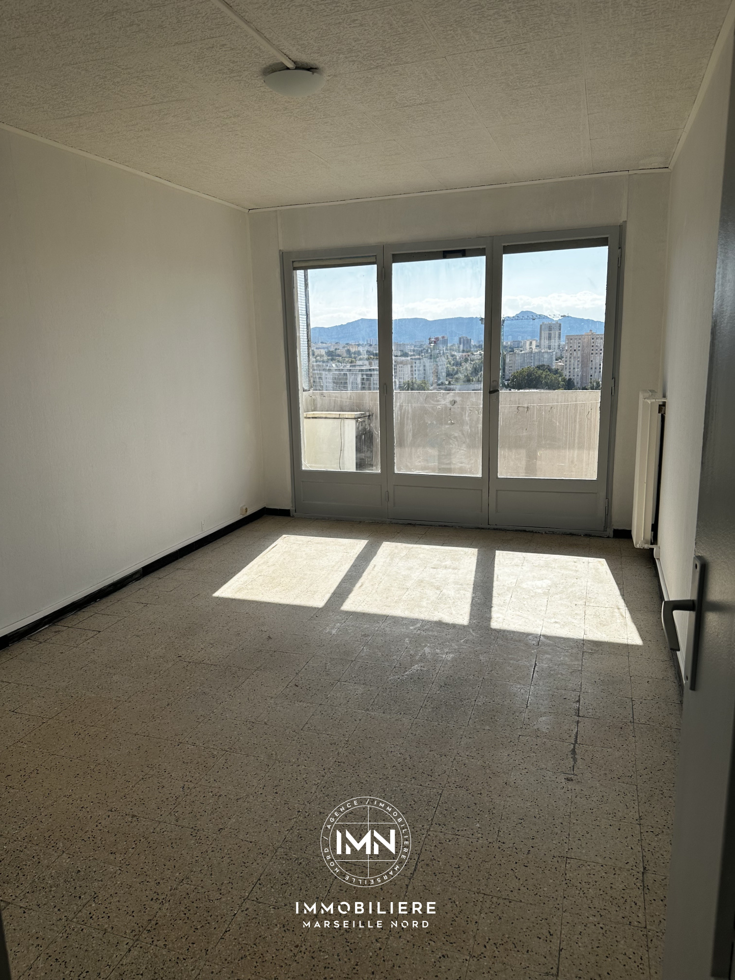 Ref : 001863L'IMMOBILIERE MARSEILLE NORD VOUS PROPOSE EN EXCLUSIVITE : RESIDENCE LA MARITIME Appartement de type 3 d'une superficie d'environ 52 m² situé au 10 ème étage comprenant une cuisine, un salon, 2...